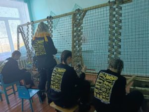 Однако помощь молодёжи – лишь грань их миссии. Бойцы отряда «220 Вольт» оказали помощь женщинам – волонтерам в плетении маскировочных сетей для бойцов СВО.